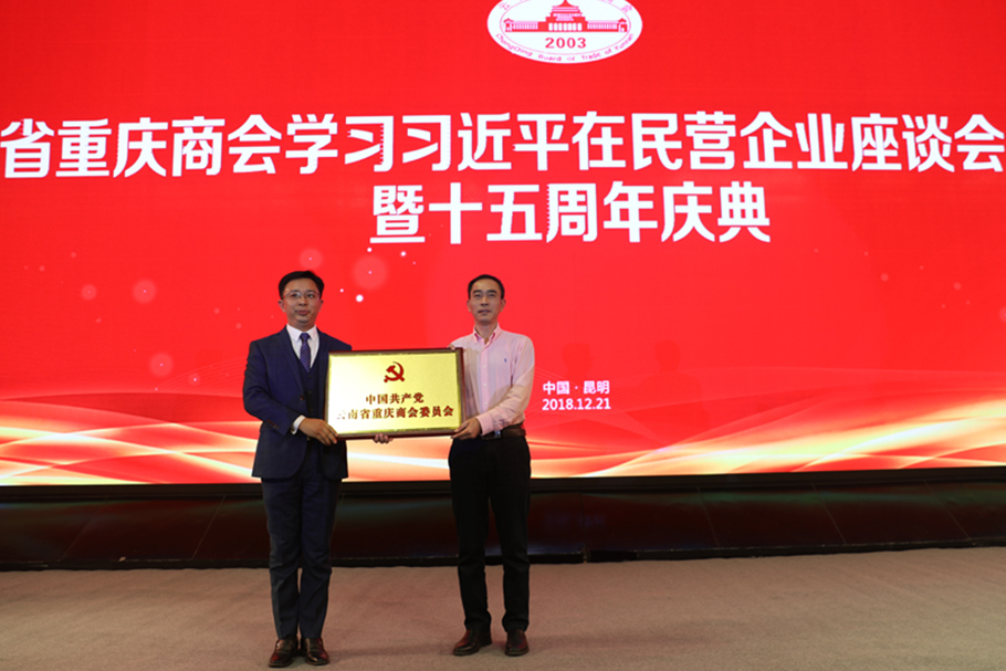 云南省工商聯(lián)黨組成員、副主席夏云東同志在會(huì)上宣讀了《關(guān)于批準(zhǔn)成立中國共產(chǎn)黨云南省重慶商會(huì)委員會(huì)的批復(fù)》,并向云南省重慶商會(huì)首任黨委書記高柱明同志授牌。