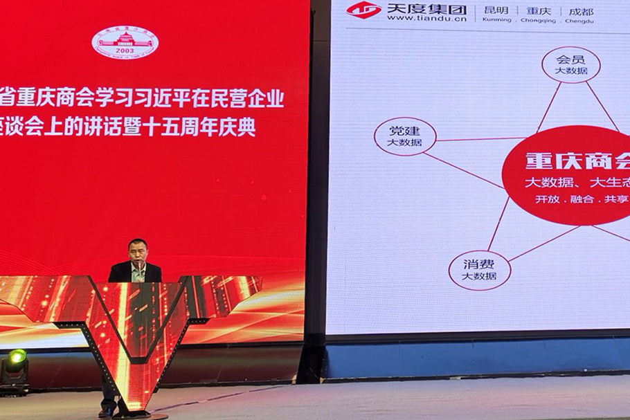 2018年12月21日下午,云南省重慶商會(huì)在云安會(huì)都國際會(huì)議中心隆重舉行主題為《云南省重慶商會(huì)學(xué)習(xí)習(xí)近平總書記在民營(yíng)企業(yè)座談會(huì)上的講話暨十五周年》活動(dòng),云南省人民政府副省長(zhǎng)王顯剛,云南省政協(xié)副主席、省工商聯(lián)主席喻頂成等領(lǐng)導(dǎo)出席了會(huì)議,天度集團(tuán)董事長(zhǎng)鄭桂文現(xiàn)場(chǎng)對(duì)“商會(huì)大數(shù)據(jù)”建設(shè)情況進(jìn)行介紹并出席了大數(shù)據(jù)平臺(tái)啟動(dòng)儀式。