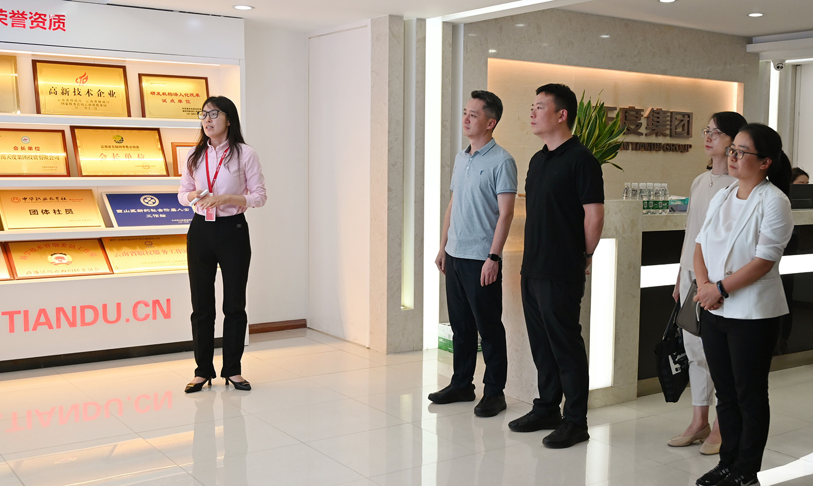 匯報結(jié)束后,調(diào)研組還參觀了集團總部,了解企業(yè)經(jīng)營發(fā)展情況。郭亮呈對區(qū)網(wǎng)聯(lián)會工作給予高度評價,并邀請?zhí)於燃瘓F到晉寧考察、交流、合作。