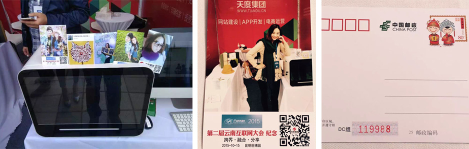 天度集團作為云南本土很大的互聯(lián)網(wǎng)服務(wù)企業(yè),在本次參展中,向業(yè)界展示了“互聯(lián)網(wǎng)+”系列服務(wù)及產(chǎn)品,并聯(lián)合云南省郵政局展示了“互聯(lián)網(wǎng)+郵政”的系列應(yīng)用。在本次大會中,天度集團參展展位為大會嘉賓免費提供了“第二屆云南省互聯(lián)網(wǎng)大會紀念”個性化明信片打印,并取得廣泛關(guān)注和好評。