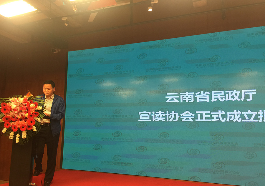 省民政廳民管二處楊武成處長(zhǎng)宣讀《云南省民政廳關(guān)于批準(zhǔn)成立云南省互聯(lián)網(wǎng)零售業(yè)協(xié)會(huì)的批復(fù)》