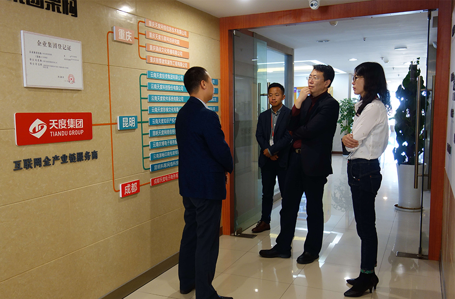 11月5日下午,商務部中國國際電子商務中心研究院副院長張建軍(兼任電子貿易產業(yè)技術創(chuàng)新戰(zhàn)略聯(lián)盟秘書長、商務部電子商務繼續(xù)教育基地專家委員、國家標準委電子商務交易產品質量信息標準組專家、商務部電子商務進農村綜合示范評審專家)蒞臨天度集團考察交流。天度集團董事長鄭桂文、云南蔚嵐信息技術有限公司總經理陳玉鳳、云南天度大數(shù)據(jù)產業(yè)發(fā)展有限公司總經理施錦明等接待并進行匯報交流。
