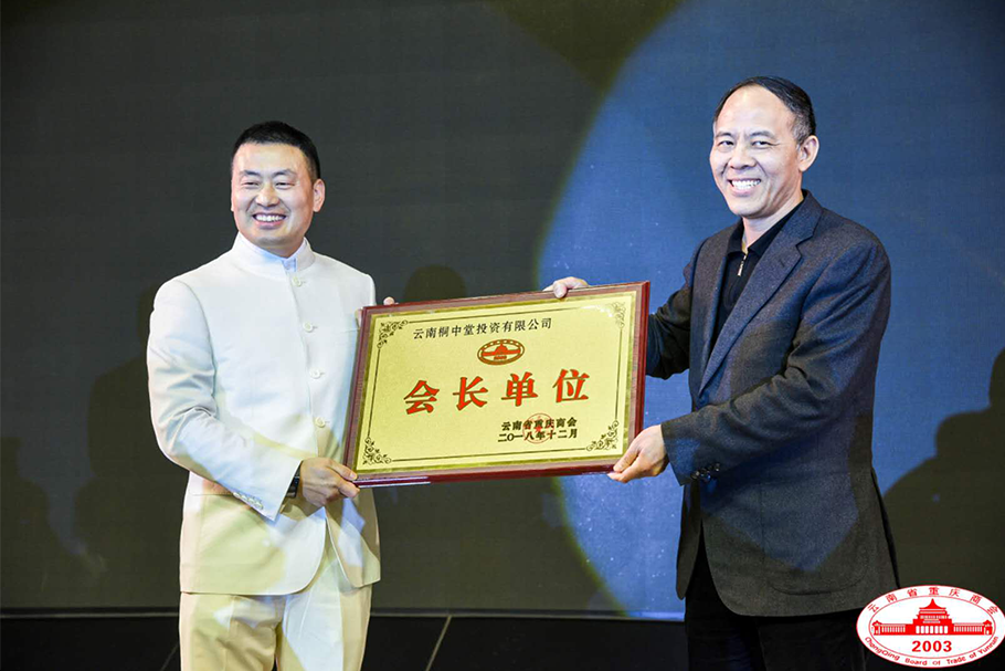 云南省人民政府副省長(zhǎng)王顯剛同志為蒲治全會(huì)長(zhǎng)授“會(huì)長(zhǎng)單位”牌。