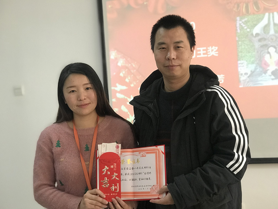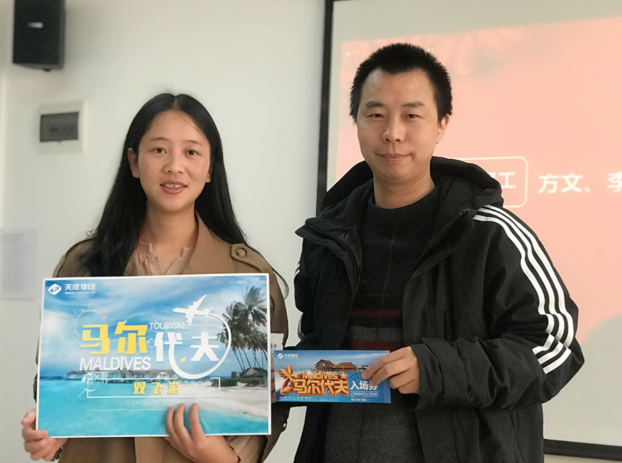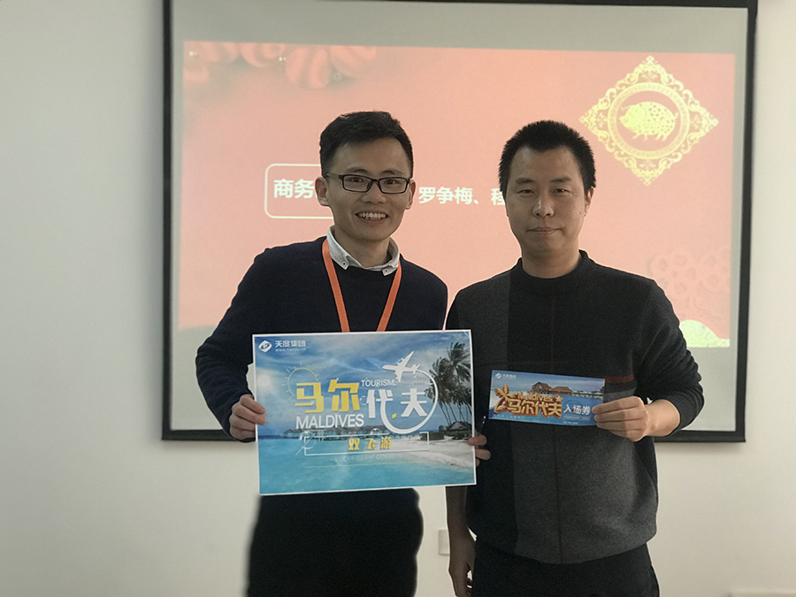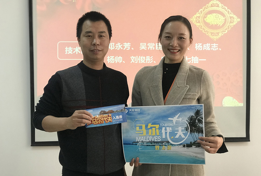 天度網(wǎng)絡(luò)公司今年拿出數(shù)十萬(wàn)現(xiàn)金紅包,由楊總和陸總進(jìn)行發(fā)放(集團(tuán)每個(gè)公司的獎(jiǎng)勵(lì)和獎(jiǎng)金發(fā)放都是單獨(dú)進(jìn)行,據(jù)悉,集團(tuán)今年不管是獎(jiǎng)金總額、還是獎(jiǎng)金單額都超過(guò)往年,總額超過(guò)7位數(shù))。公司對(duì)2018年度各部門優(yōu)秀同事進(jìn)行了表彰,并發(fā)對(duì)各個(gè)獎(jiǎng)項(xiàng)進(jìn)行發(fā)放,同時(shí)鄭董事長(zhǎng)現(xiàn)場(chǎng)抽取了“馬爾代夫帶薪休假旅游”的名額。
