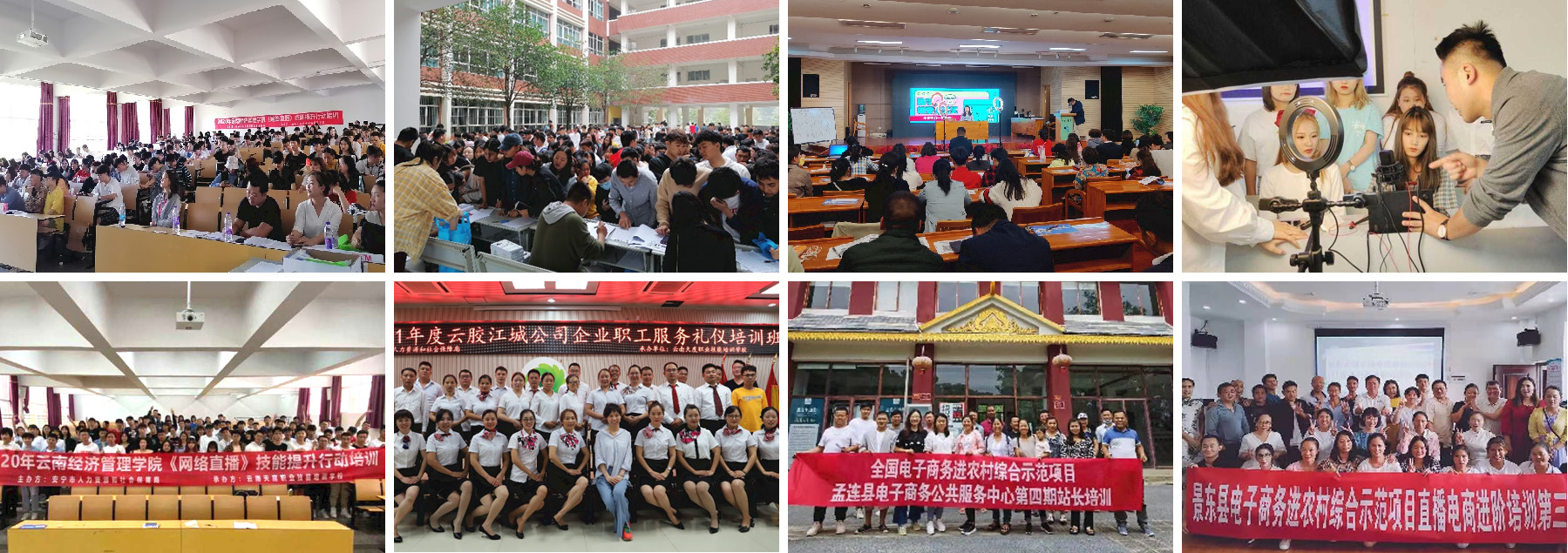 高校技能培訓(xùn)也是學(xué)校的重點(diǎn)工作,天度培訓(xùn)學(xué)校為云南經(jīng)濟(jì)管理學(xué)院、云南工商學(xué)院近2000名學(xué)生進(jìn)行職業(yè)技能提升培訓(xùn),熱門專業(yè)包括電子商務(wù)運(yùn)營(yíng)管理、SYB創(chuàng)業(yè)培訓(xùn)、網(wǎng)絡(luò)創(chuàng)業(yè)培訓(xùn)、網(wǎng)絡(luò)直播培訓(xùn)、人力資源管理師等。 我校在云南經(jīng)濟(jì)管理學(xué)院畢業(yè)生網(wǎng)絡(luò)直播培訓(xùn)中,創(chuàng)下一周內(nèi)開展15個(gè)班、共計(jì)1345人的培訓(xùn)記錄,并創(chuàng)新《網(wǎng)絡(luò)直播培訓(xùn)》教材。結(jié)合課程的實(shí)際需求,開發(fā)了符合實(shí)際需求的線上線下培訓(xùn)課程體系,研發(fā)以電商運(yùn)營(yíng)為基礎(chǔ)、網(wǎng)絡(luò)直播為手段的應(yīng)用性教材。