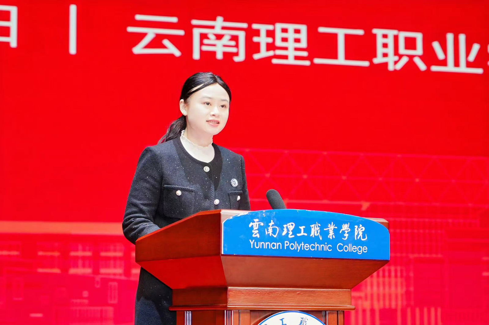 楊陽董事長作致辭,她代表學(xué)校董事會向出席揭牌儀式的領(lǐng)導(dǎo)、嘉賓表示熱烈歡迎,向辛勤努力的雙方團隊表示衷心感謝。她表示,學(xué)校與天度投資集團攜手并進、共同探索建立的天度數(shù)字商務(wù)產(chǎn)業(yè)學(xué)院是雙方優(yōu)勢互補、資源共享的典范,更是教育與產(chǎn)業(yè)深度融合、互利共贏的生動實踐。通過這一平臺,校企雙方將共同探索數(shù)字商務(wù)領(lǐng)域的前沿技術(shù)和創(chuàng)新模式,推動產(chǎn)學(xué)研用深度融合,為行業(yè)培養(yǎng)更多具有創(chuàng)新精神和實踐能力的高素質(zhì)人才。她相信,在雙方的共同努力下,天度數(shù)字商務(wù)產(chǎn)業(yè)學(xué)院將不負眾望,成為云南省乃至全國眾多產(chǎn)業(yè)學(xué)院中的一顆璀璨明珠,為培養(yǎng)更多優(yōu)秀的數(shù)字商務(wù)人才、助力云南省三年行動計劃和“3815”戰(zhàn)略、推動我國數(shù)字經(jīng)濟的繁榮發(fā)展貢獻力量。
