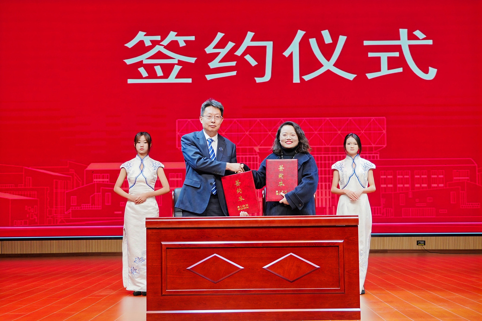 在全體參會人員的見證下,劉相校長與胡婷婷總經(jīng)理分別代表校企雙方簽署合作辦學(xué)協(xié)議。楊紅衛(wèi)董事長與鄭桂文董事長共同為“天度數(shù)字商務(wù)產(chǎn)業(yè)學(xué)院”揭牌,正式開啟產(chǎn)教融合協(xié)同育人新征程。