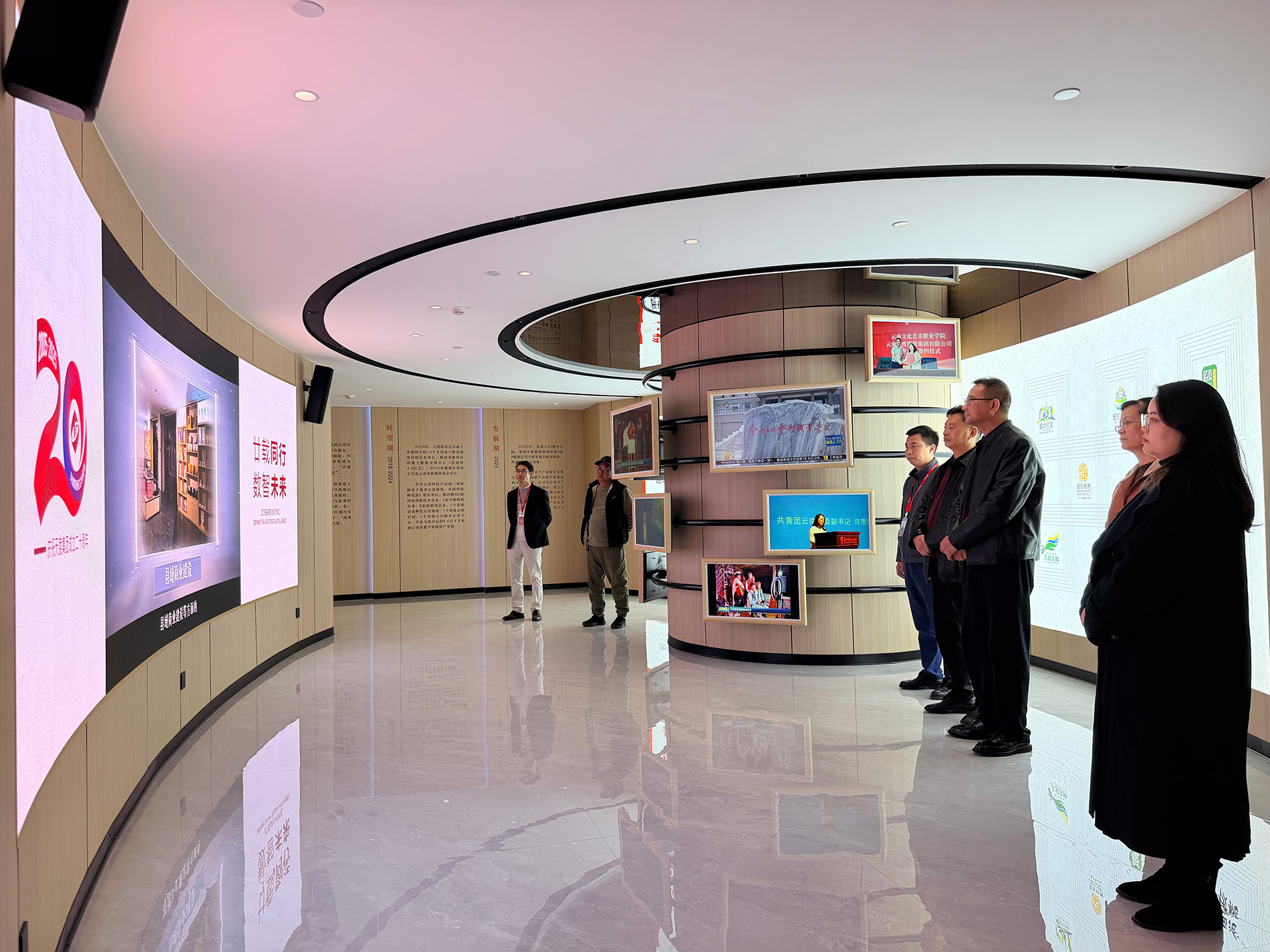 在數(shù)字化展廳,天度集團(tuán)董事長鄭桂文向儂援校長一行系統(tǒng)介紹了集團(tuán)二十年發(fā)展歷程、核心業(yè)務(wù)架構(gòu)與未來戰(zhàn)略愿景。鄭桂文董事長回顧了天度從創(chuàng)業(yè)起步到如今成為云南省產(chǎn)業(yè)數(shù)字化領(lǐng)域重要參與者的成長路徑,重點(diǎn)闡述了集團(tuán)在“聚焦數(shù)字經(jīng)濟(jì)、服務(wù)鄉(xiāng)村振興”戰(zhàn)略指引下,在人工智能技術(shù)應(yīng)用、產(chǎn)業(yè)互聯(lián)網(wǎng)平臺建設(shè)、電子商務(wù)與數(shù)字化供應(yīng)鏈、產(chǎn)教融合共建產(chǎn)業(yè)學(xué)院等板塊的探索與成果。